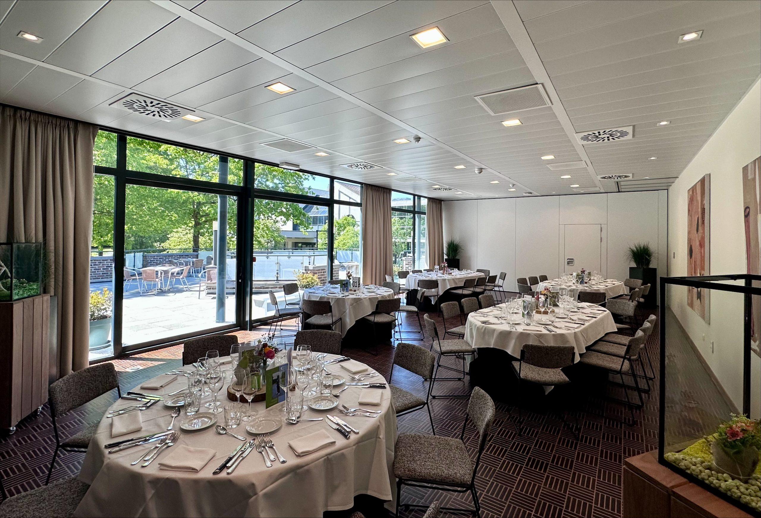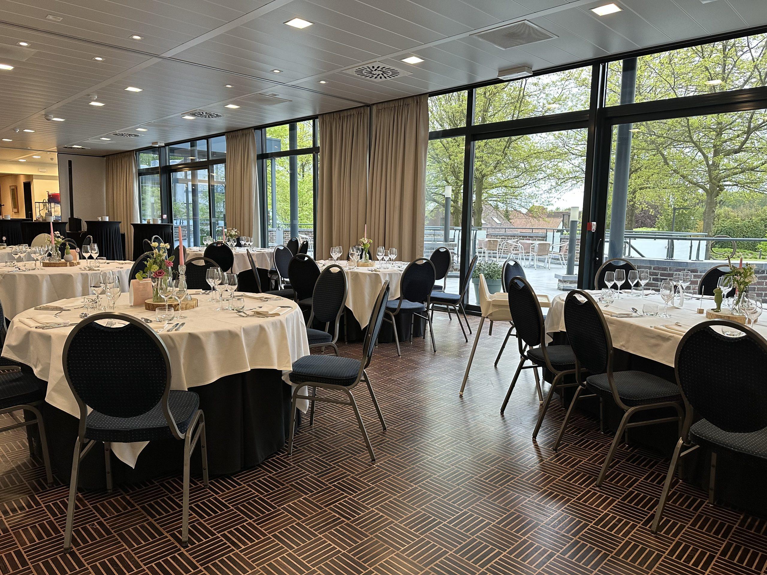 Salle moderne avec parquet située au premier étage. Cette salle est dotée de hautes fenêtres qui apportent une lumière naturelle et donnent un accès direct à une terrasse attenante. Par beau temps, votre réception peut également avoir lieu à l’extérieur. Grâce à la paroi modulaire, cette pièce peut être divisée en 2 pièces de 48 ou 72 m². Idéal pour réceptions, fêtes de famille, fêtes prénatales, etc. Idéal pour réceptions, fêtes de famille, fêtes prénatales, etc. Pour les personnes en fauteuil roulant et les personnes à mobilité réduite, il y a un ascenseur.